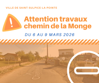 Travaux de réfection Chemin de la Monge du 6 au 9 mars de 7h à 18h